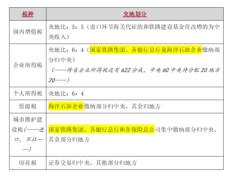 1.中央固定收入:消费税(含进口环节海关代征的部分)、车辆购置税、关税、船舶吨税、海关代征的进口环节增值税;