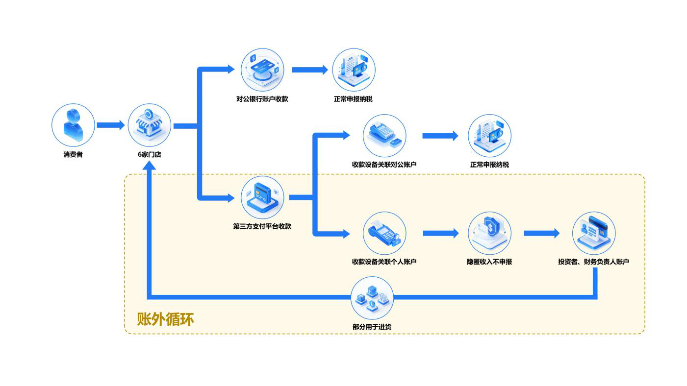 进一步核实确认,该公司员工个人账户2024年从第三方支付平台收取的款项中,除泰州地区6家门店销售收入外,还包含其他地区营业资金收入,相关证据资料已传递至有管辖权的税务机关另案处理。经逐笔梳理第三方支付平台交易流水,结合对公账户银行流水和申报数据交叉印证,检查人员最终锁定应税收入,查实该公司隐匿销售收入达3361.2万元。